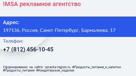IMSA, рекламное агентство по адресу 197136, Россия, Санкт-Петербург, Бармалеева, 17 в дальнейшем Организация, размещена в следующих категориях: