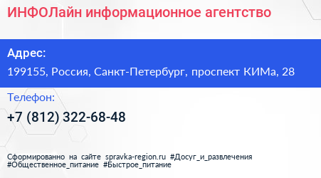 ИНФОЛайн, информационное агентство по адресу 199155, Россия, Санкт-Петербург, проспект КИМа, 28 в дальнейшем Организация, размещена в следующих категориях: