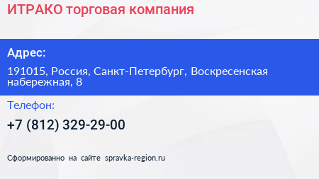 ИТРАКО, торговая компания по адресу 191015, Россия, Санкт-Петербург, Воскресенская набережная, 8 в дальнейшем Организация, размещена в следующих категориях: