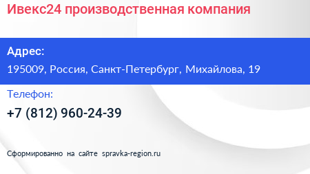 Ивекс24, производственная компания по адресу 195009, Россия, Санкт-Петербург, Михайлова, 19 в дальнейшем Организация, размещена в следующих категориях: