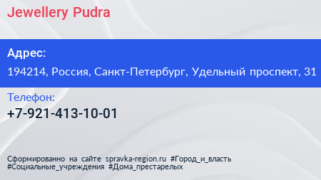 Jewellery Pudra по адресу 194214, Россия, Санкт-Петербург, Удельный проспект, 31 в дальнейшем Организация, размещена в следующих категориях: