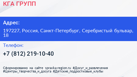 КГА ГРУПП по адресу 197227, Россия, Санкт-Петербург, Серебристый бульвар, 18 в дальнейшем Организация, размещена в следующих категориях: