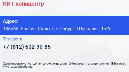 КИТ, копицентр по адресу 188666, Россия, Санкт-Петербург, Шувалова, 16/9 в дальнейшем Организация, размещена в следующих категориях:
