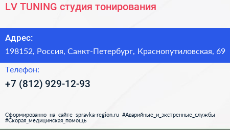 LV TUNING, студия тонирования по адресу 198152, Россия, Санкт-Петербург, Краснопутиловская, 69 в дальнейшем Организация, размещена в следующих категориях: