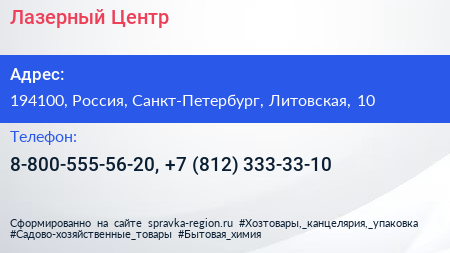 Лазерный Центр по адресу 194100, Россия, Санкт-Петербург, Литовская, 10 в дальнейшем Организация, размещена в следующих категориях: