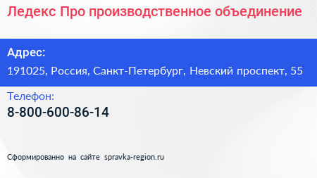 Ледекс Про, производственное объединение по адресу 191025, Россия, Санкт-Петербург, Невский проспект, 55 в дальнейшем Организация, размещена в следующих категориях: