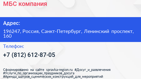 МБС, компания по адресу 196247, Россия, Санкт-Петербург, Ленинский проспект, 160 в дальнейшем Организация, размещена в следующих категориях: