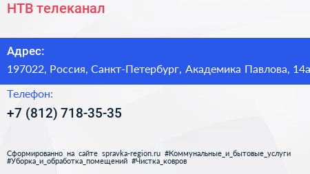 НТВ, телеканал по адресу 197022, Россия, Санкт-Петербург, Академика Павлова, 14а в дальнейшем Организация, размещена в следующих категориях: