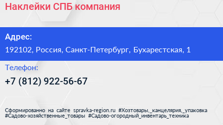 Наклейки СПБ, компания по адресу 192102, Россия, Санкт-Петербург, Бухарестская, 1 в дальнейшем Организация, размещена в следующих категориях: