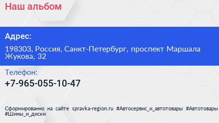 Наш альбом по адресу 198303, Россия, Санкт-Петербург, проспект Маршала Жукова, 32 в дальнейшем Организация, размещена в следующих категориях: