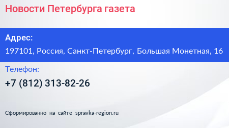Новости Петербурга, газета по адресу 197101, Россия, Санкт-Петербург, Большая Монетная, 16 в дальнейшем Организация, размещена в следующих категориях: