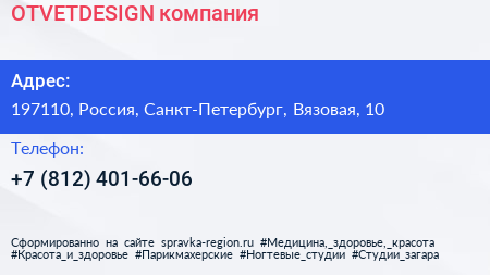 OTVETDESIGN, компания по адресу 197110, Россия, Санкт-Петербург, Вязовая, 10 в дальнейшем Организация, размещена в следующих категориях: