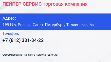 ПЕЙПЕР СЕРВИС, торговая компания по адресу 195196, Россия, Санкт-Петербург, Таллинская, 6в в дальнейшем Организация, размещена в следующих категориях: