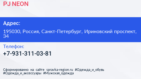 PJ NEON по адресу 195030, Россия, Санкт-Петербург, Ириновский проспект, 34 в дальнейшем Организация, размещена в следующих категориях: