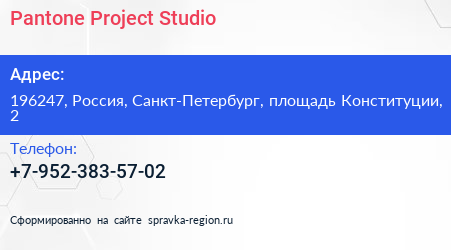 Pantone Project Studio по адресу 196247, Россия, Санкт-Петербург, площадь Конституции, 2 в дальнейшем Организация, размещена в следующих категориях: