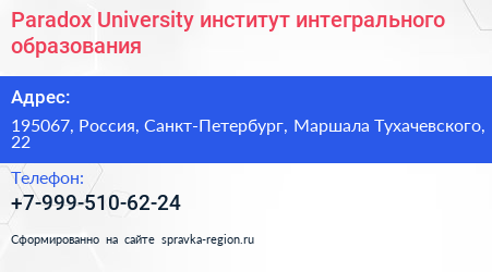 Paradox University, институт интегрального образования по адресу 195067, Россия, Санкт-Петербург, Маршала Тухачевского, 22 в дальнейшем Организация, размещена в следующих категориях: