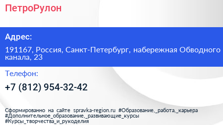 ПетроРулон по адресу 191167, Россия, Санкт-Петербург, набережная Обводного канала, 23 в дальнейшем Организация, размещена в следующих категориях: