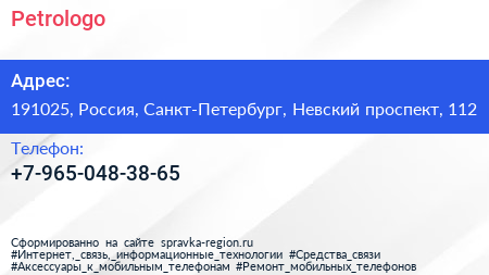 Petrologo по адресу 191025, Россия, Санкт-Петербург, Невский проспект, 112 в дальнейшем Организация, размещена в следующих категориях: