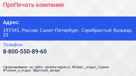 ПроПечать, компания по адресу 197341, Россия, Санкт-Петербург, Серебристый бульвар, 21 в дальнейшем Организация, размещена в следующих категориях: