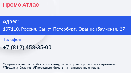 Промо Атлас по адресу 197110, Россия, Санкт-Петербург, Ораниенбаумская, 27 в дальнейшем Организация, размещена в следующих категориях: