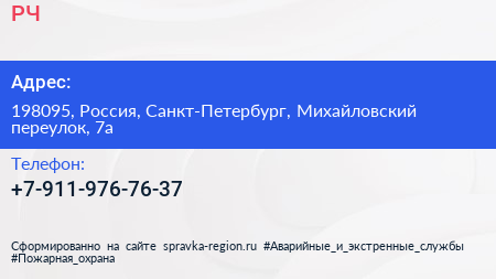 РЧ+ по адресу 198095, Россия, Санкт-Петербург, Михайловский переулок, 7а в дальнейшем Организация, размещена в следующих категориях: