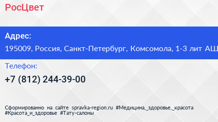 РосЦвет по адресу 195009, Россия, Санкт-Петербург, Комсомола, 1-3 лит АЩ в дальнейшем Организация, размещена в следующих категориях: