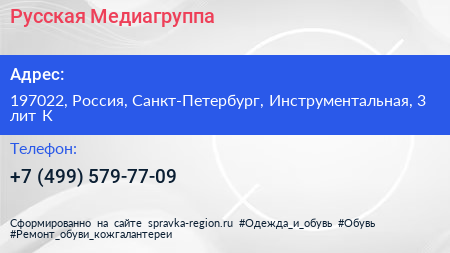 Русская Медиагруппа по адресу 197022, Россия, Санкт-Петербург, Инструментальная, 3 лит К в дальнейшем Организация, размещена в следующих категориях: