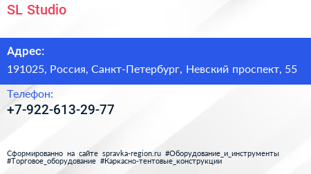 SL Studio по адресу 191025, Россия, Санкт-Петербург, Невский проспект, 55 в дальнейшем Организация, размещена в следующих категориях: