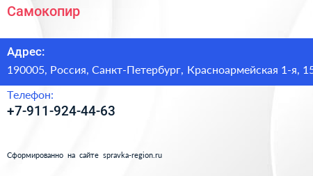 Самокопир по адресу 190005, Россия, Санкт-Петербург, Красноармейская 1-я, 15 в дальнейшем Организация, размещена в следующих категориях: