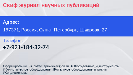 Скиф, журнал научных публикаций по адресу 197371, Россия, Санкт-Петербург, Шаврова, 27 в дальнейшем Организация, размещена в следующих категориях: