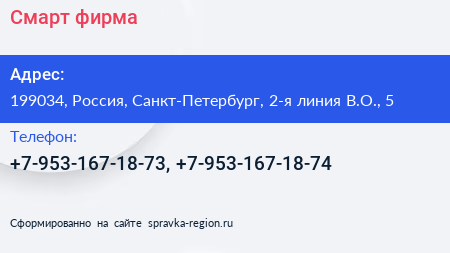Смарт, фирма по адресу 199034, Россия, Санкт-Петербург, 2-я линия В.О., 5 в дальнейшем Организация, размещена в следующих категориях: