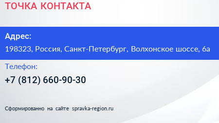 Для связи с организацией воспользуйтесь номером телефона: +7 (812) 660-90-30. Пн: c 09:00-18:00, Вт: c 09:00-18:00, Ср: c 09:00-18:00, Чт: c 09:00-18:00, Пт: c 09:00-18:00, Сб: выходной, Вс: выходной, вы можете обратиться в эту организацию.