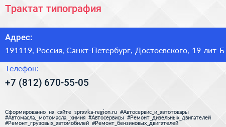 Трактат, типография по адресу 191119, Россия, Санкт-Петербург, Достоевского, 19 лит Б в дальнейшем Организация, размещена в следующих категориях:
