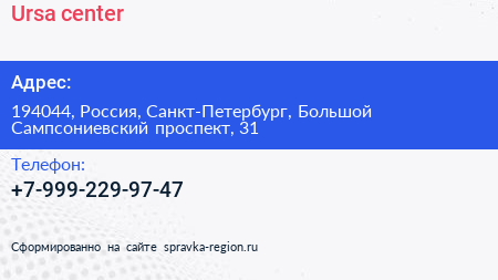 Ursa.center по адресу 194044, Россия, Санкт-Петербург, Большой Сампсониевский проспект, 31 в дальнейшем Организация, размещена в следующих категориях: