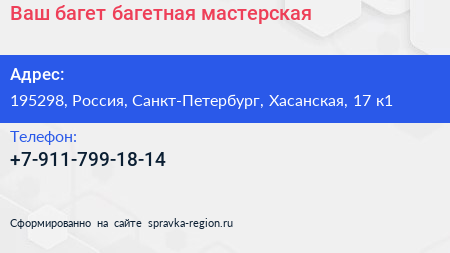 Ваш багет, багетная мастерская по адресу 195298, Россия, Санкт-Петербург, Хасанская, 17 к1 в дальнейшем Организация, размещена в следующих категориях: