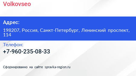 Volkovseo по адресу 198207, Россия, Санкт-Петербург, Ленинский проспект, 114 в дальнейшем Организация, размещена в следующих категориях:
