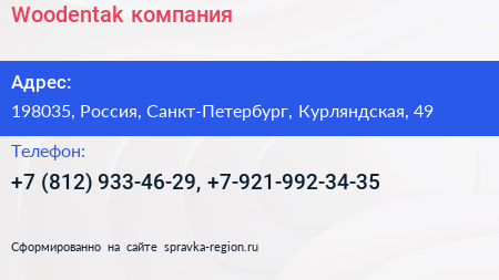 Woodentak, компания по адресу 198035, Россия, Санкт-Петербург, Курляндская, 49 в дальнейшем Организация, размещена в следующих категориях: