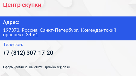Центр скупки по адресу 197373, Россия, Санкт-Петербург, Комендантский проспект, 34 к1 в дальнейшем Организация, размещена в следующих категориях: