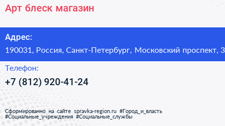 Арт-блеск, магазин по адресу 190031, Россия, Санкт-Петербург, Московский проспект, 3 в дальнейшем Организация, размещена в следующих категориях: