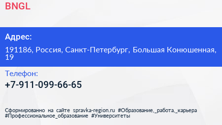 BNGL по адресу 191186, Россия, Санкт-Петербург, Большая Конюшенная, 19 в дальнейшем Организация, размещена в следующих категориях:
