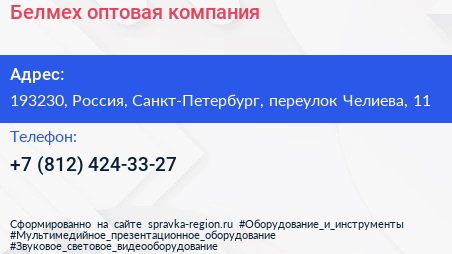 Белмех, оптовая компания по адресу 193230, Россия, Санкт-Петербург, переулок Челиева, 11 в дальнейшем Организация, размещена в следующих категориях:
