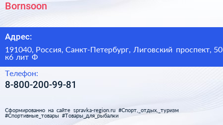 Bornsoon по адресу 191040, Россия, Санкт-Петербург, Лиговский проспект, 50 к6 лит Ф в дальнейшем Организация, размещена в следующих категориях: