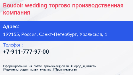 Boudoir wedding, торгово-производственная компания по адресу 199155, Россия, Санкт-Петербург, Уральская, 1 в дальнейшем Организация, размещена в следующих категориях: