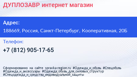 ДУПЛОЗАВР, интернет-магазин по адресу 188669, Россия, Санкт-Петербург, Кооперативная, 20Б в дальнейшем Организация, размещена в следующих категориях: