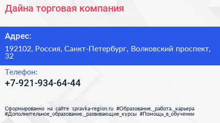 Дайна, торговая компания по адресу 192102, Россия, Санкт-Петербург, Волковский проспект, 32 в дальнейшем Организация, размещена в следующих категориях: