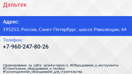 Дэльтек по адресу 195253, Россия, Санкт-Петербург, шоссе Революции, 64 в дальнейшем Организация, размещена в следующих категориях:
