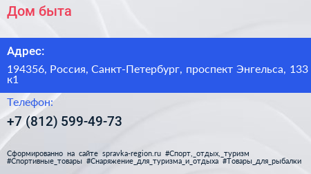 Дом быта по адресу 194356, Россия, Санкт-Петербург, проспект Энгельса, 133 к1 в дальнейшем Организация, размещена в следующих категориях: