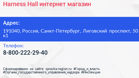 Harness-Hall, интернет-магазин по адресу 191040, Россия, Санкт-Петербург, Лиговский проспект, 50 к1 в дальнейшем Организация, размещена в следующих категориях: