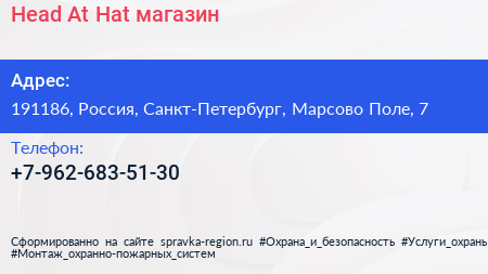 Head At Hat, магазин по адресу 191186, Россия, Санкт-Петербург, Марсово Поле, 7 в дальнейшем Организация, размещена в следующих категориях: