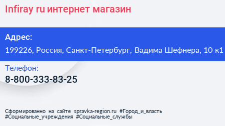 Infiray.ru, интернет-магазин по адресу 199226, Россия, Санкт-Петербург, Вадима Шефнера, 10 к1 в дальнейшем Организация, размещена в следующих категориях: